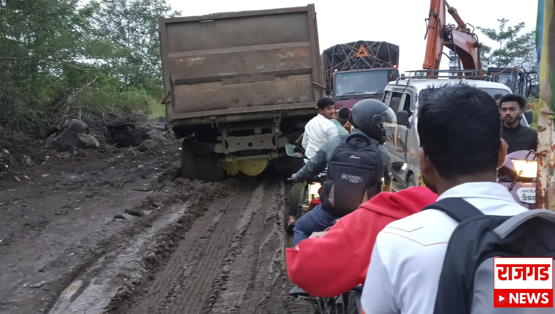 भोर -महाड महामार्गावर अवजड वाहने खचल्याने वाहनांच्या लांबच लांब रांगा, घरी जाणा-या चाकरमान्यांची संतप्त प्रतिक्रिया