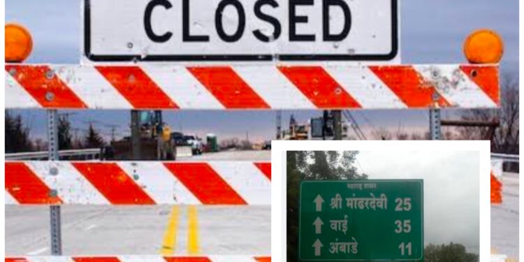 कापूरव्होळ -भोर-मांढरदेवी रस्ता १९ डिसेंबर ते ५ जानेवारी कालावधीकरिता बंद