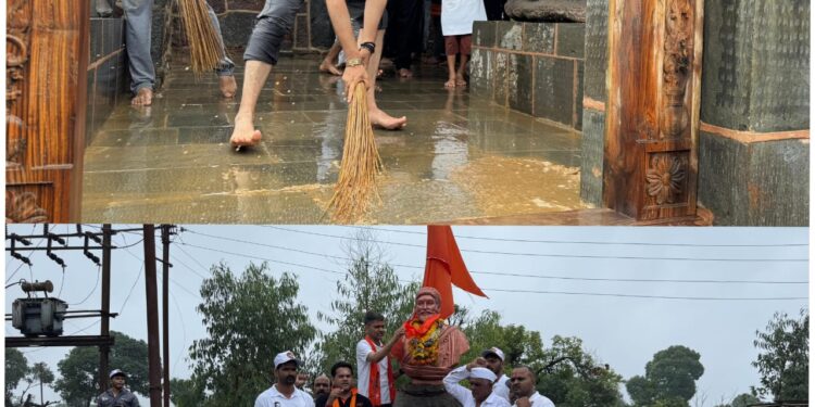 रायरेश्वर भोर – शिवरायांचे विचार घराघरात, मनामनात पोहोचले पाहिजे. हे विचार पुढे न्यायचे असतील तर शिवरायांनी उभे केलेले गड किल्ले व इतिहासाला उजाळा देऊन ते जपण्यासाठी आपण सर्वांनी काम करायला हवे असे प्रतिपादन खासदार निलेश लंके यांनी केले. ते रविवारी दि.२५ रोजी किल्ले रायरेश्वर (ता.भोर) येथील गड किल्ले संवर्धन व स्वच्छता मोहिम प्रसंगी शिवभक्तांसमोर बोलत होते.छत्रपती शिवाजी महाराजांचे नाव घेऊन आपण समाजात वावरतो. शिवरायांचे नाव घेतल्याशिवाय आपला दिवसही जात नाही , त्या राजासाठी महिन्यातील एक तरी दिवस दिला पाहिजे तरच आपल्याला ‘जय शिवाजी जय भवानी’ म्हणण्याचा अधिकार असुन  छत्रपती शिवरायांचे विचार आपल्या सर्वांच्या मनात, समाजात रुजायला हवेत असे लंके यांनी सांगितले.यावेळी आपला मावळा संघटनेचा शुभारंभ खासदार लंके यांच्या उपस्थितीत करण्यात आला. खासदार लंके यांनी रायरेश्वर मंदीरात महादेवाचे दर्शन व शिवरायांच्या पुतळ्यास पुष्पहार अर्पण करून उपस्थित शिवभक्तांसमवेत स्वराज्याची शपथ घेत स्वच्छता मोहिमेस सुरवात करण्यात आली. यावेळी मंदिर परिसरात स्वच्छता व वृक्षारोपण करून वीज व सौर उर्जाचे दिवे, शिवभक्तांना पिण्याच्या पाण्याचे रांजण, सुचनादर्शक फलक बसविण्यात आले. सभामंडपाच्या खांबांना रंग देण्यात आला. ग्रामस्थांना रेनकोट वाटप केले. पेविंग ब्लॉग, डस्टबीन आदी उपयुक्त वस्तू देऊन विविध उपक्रम राबविण्यात आले. यावेळी जिल्हा परिषदेच्या शाळेची पाहणी खासदार लंके यांच्याकडून करण्यात आली.