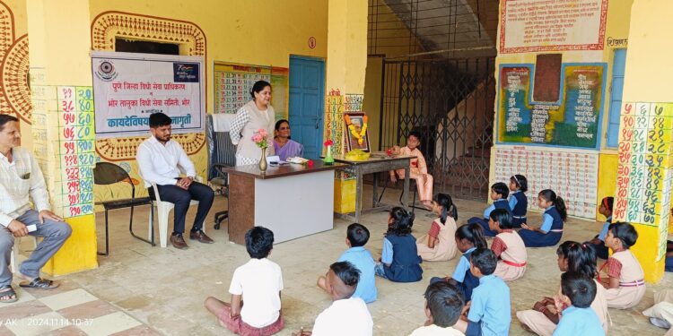 भोर – पुणे जिल्हा विधी सेवा प्राधिकरण, पुणे, भोर तालुका विधी समिती व भोर वकिल संघटना यांच्या संयुक्त विद्यमाने भोर नगरपरिषदेच्या महाराणा प्रताप प्राथमिक विद्यालय येथे उपस्थित असणा-या बालदिनाचे औचित्य साधून विद्यार्थ्यांना कायदेवषियक मार्गदर्शन करण्यात आले.