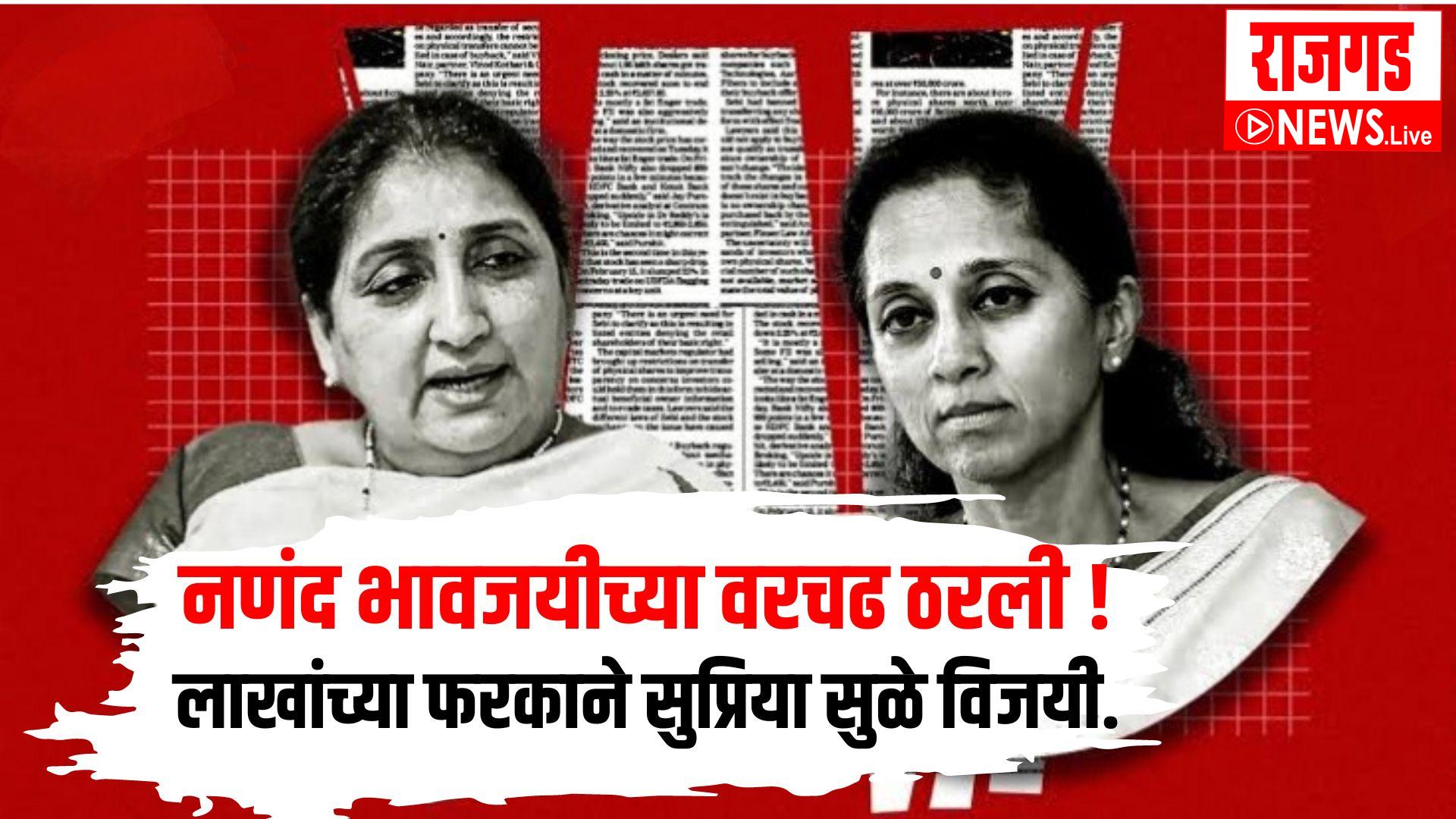 नणंद भावजयीच्या वरचढ ठरली ! लाखांच्या फरकाने सुप्रिया सुळे विजयी.