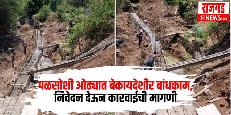 भोर : भोर तालुक्यातील पळसोशी गावातील शंकर महादेव म्हस्के यांनी पळसोशी गावच्या ओढ्यात बेकायदेशीर बांधकाम केल्याचा आरोप आहे. या प्रकरणी ग्रामस्थ विनायक आण्णा म्हस्के यांनी २४ मे रोजी भोरचे तहसीलदार, उपविभागीय अधिकारी, सार्वजनिक बांधकाम विभाग, पंचायत समिती,व भोर पोलीस स्टेशन यांना निवेदन देऊन कारवाईची मागणी केली आहे.
