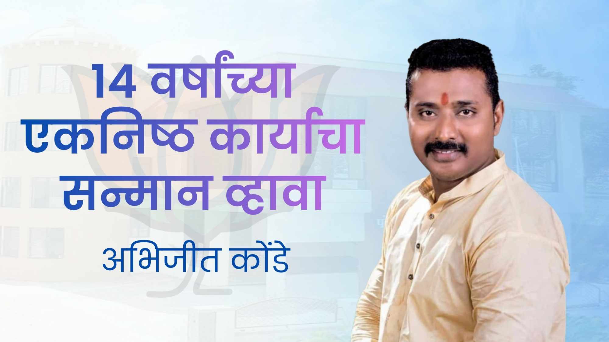 १४ वर्षांच्या एकनिष्ठ कार्याचा सन्मान व्हावा, विकासासाठी प्रयत्नशील अभिजीत कोंडे यांची पक्षाकडे मागणी