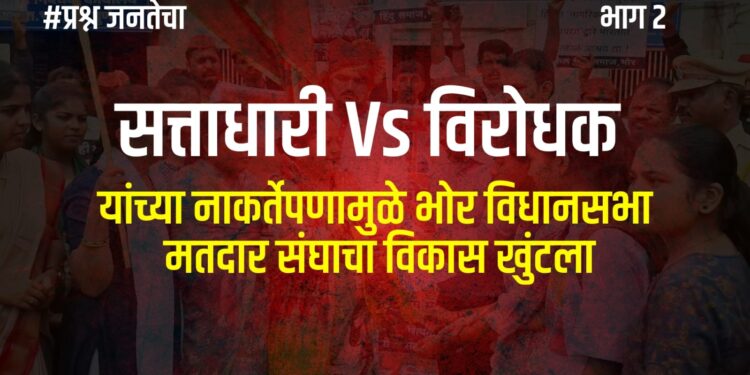 राज्यात लवकरच विधानसभेची निवडणूक होणार आहे. त्यादृष्टीने विविध पक्षांची उमेदवारांसर्भात चाचपणी सुरु झाली असल्याचे पाहिला मिळत आहे. पुणे जिल्ह्यातील भोर विधान क्षेत्रामध्ये भोर, वेल्हा (राजगड), मुळशी या तीन तालुक्यांची मिळून भोर विधानसभा होते. या विधानसभा क्षेत्राचा जितका विकास होणे आवश्यक होते, तितका न झाल्याने तालुक्याची दुर्दशा व आर्थिक मागासलेपण दिवसेंदिवस वाढताना दिसत आहे. निवडणूक तोंडावर आली की, येथील रखडलेल्या प्रश्नांबाबात सत्ताधारी व विरोधक या दोघांनाही जाग येते. मात्र, प्रश्नांची सोडवणूक होत नाही, हे मोठे दुर्देव आहे. भोर विधान सभा क्षेत्रामध्ये निष्क्रेय विरोधक यांच्यामुळे सत्ताधाऱ्यांचे कायम वर्चस्व राहिलेले आहे.