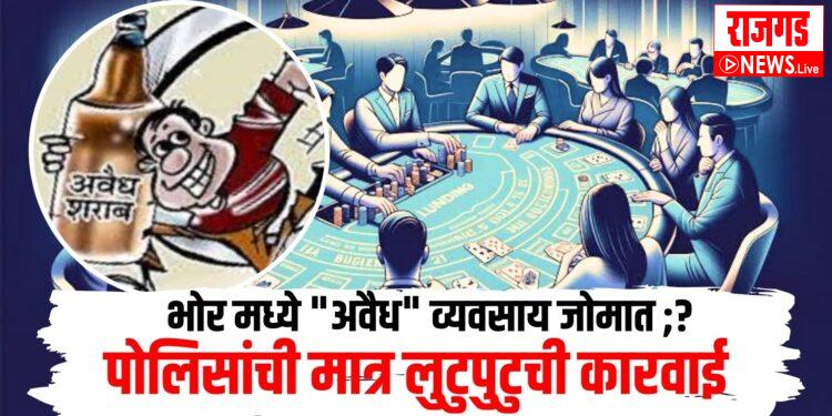 जिल्हा पोलीस अधीक्षक पंकज देशमुख यांनी जिल्हा पोलीस ठाण्याच्या हद्दीतील सर्व प्रकारचे अवैध धंदे बंद करण्याचे आदेश पोलिसांना दिले आहेत. मात्र, भोर पोलिस ठाण्याच्या हद्दीतील सर्व अवैध धंदे जोमात सुरु असून, पोलीस मात्र लुटुपुटुची कारवाई करत आहेत.