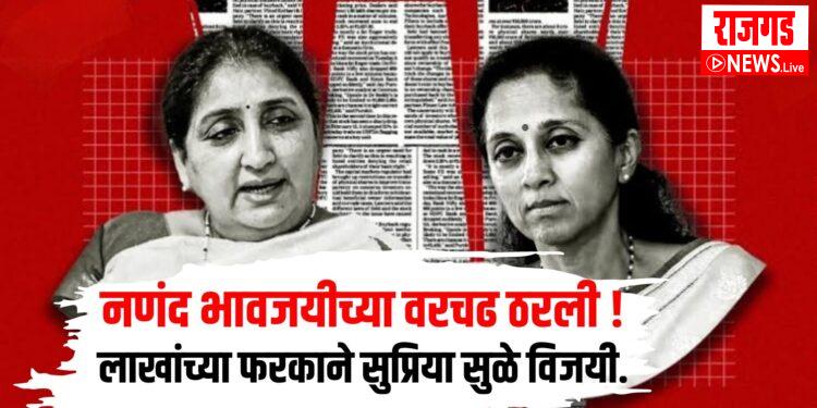 बारामती : लोकसभा निवडणूक 2024 मध्ये राज्यातील सर्वात प्रतिष्ठेची लढाई ही बारामती लोकसभा मतदारसंघात झाली. नणंद-भावजयी एकमेकींच्या विरोधात उभ्या होत्या. निवडणूकीमध्ये नणंद भावजयीच्या वरचढ ठरली आहे.सुप्रिया सुळे यांनी सुनेत्रा पवार यांना पराभूत केले आहे.