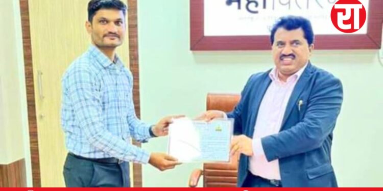 Pune News !प्रशस्तीपत्र सुपूर्द करीत पुणे परिमंडलाकडून सहाय्यक अभियंता पुरुषोत्तम कुंजीर यांचे कौतुक.
