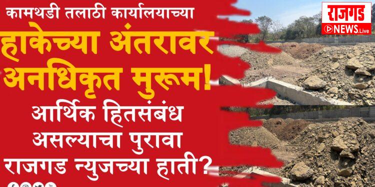 कामथडी: कामथडी तलाठी कार्यालयाच्या जवळच मोठ्या प्रमाणात अनधिकृत मुरूम उत्खनन करून टाकत असल्याचे राजगड न्यूजला माहिती मिळाली आहे. या प्रकरणात स्थानिक तलाठी यांच्या आर्थिक हितसंबंध असल्याचा सढळ पुरावाही राजगड न्यूजच्या हाती लागला आहे तर याबाबत नागरिकांमध्ये मोठ्या प्रमाणात चर्चा सुरू आहे.