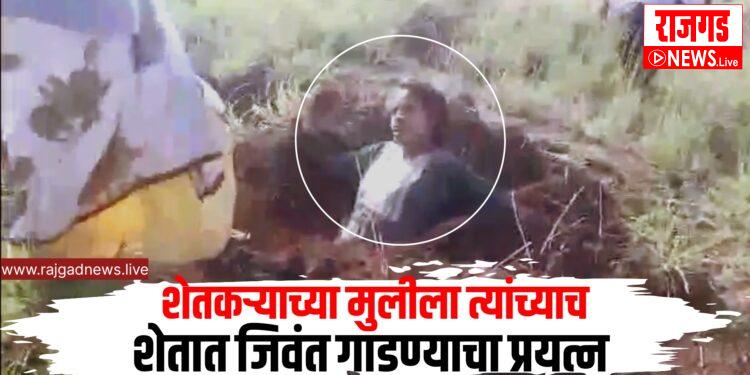 राजगड : शेतकऱ्याच्या मुलीला त्यांच्याच शेतामध्ये जीवंत गाडण्याचा प्रयत्न केल्याची धक्कादायक घटना समोर आली आहे. पुणे जिल्ह्यातल्या राजगड तालुक्यातील कोंढावळे येथे ही घटना घडली आहे.
