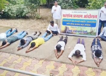 Bhor – भोर वनपरिक्षेत्र कार्यालयासमोर साष्टांग प्रणाम आंदोलन; लेखी आश्वासनानंतर आंदोलन मागे
