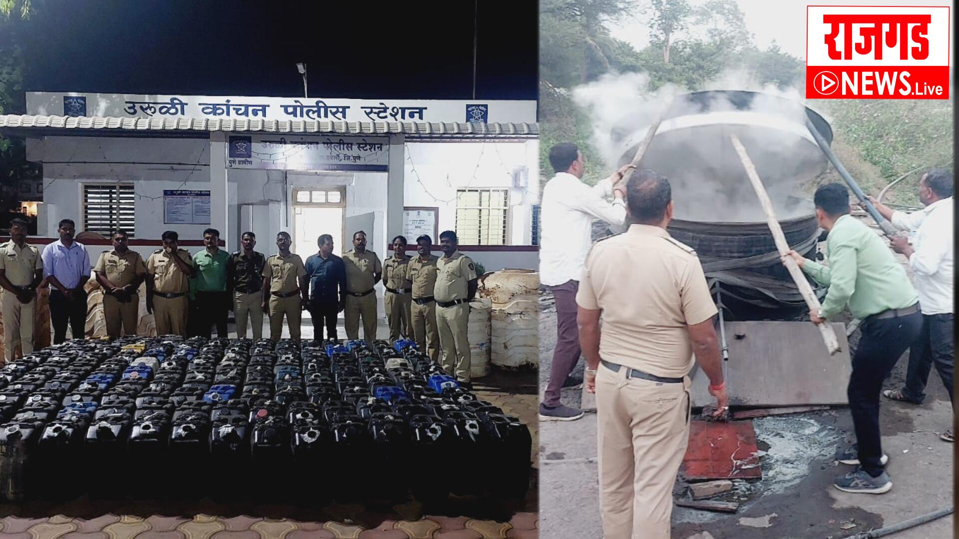 उरुळी कांचन पोलिसांची दमदार कारवाई:छापा मारत हातभट्टी दारूची भट्टी फोडून  कारवाईत नऊ हजार लिटर हातभट्टी दारू जप्त !