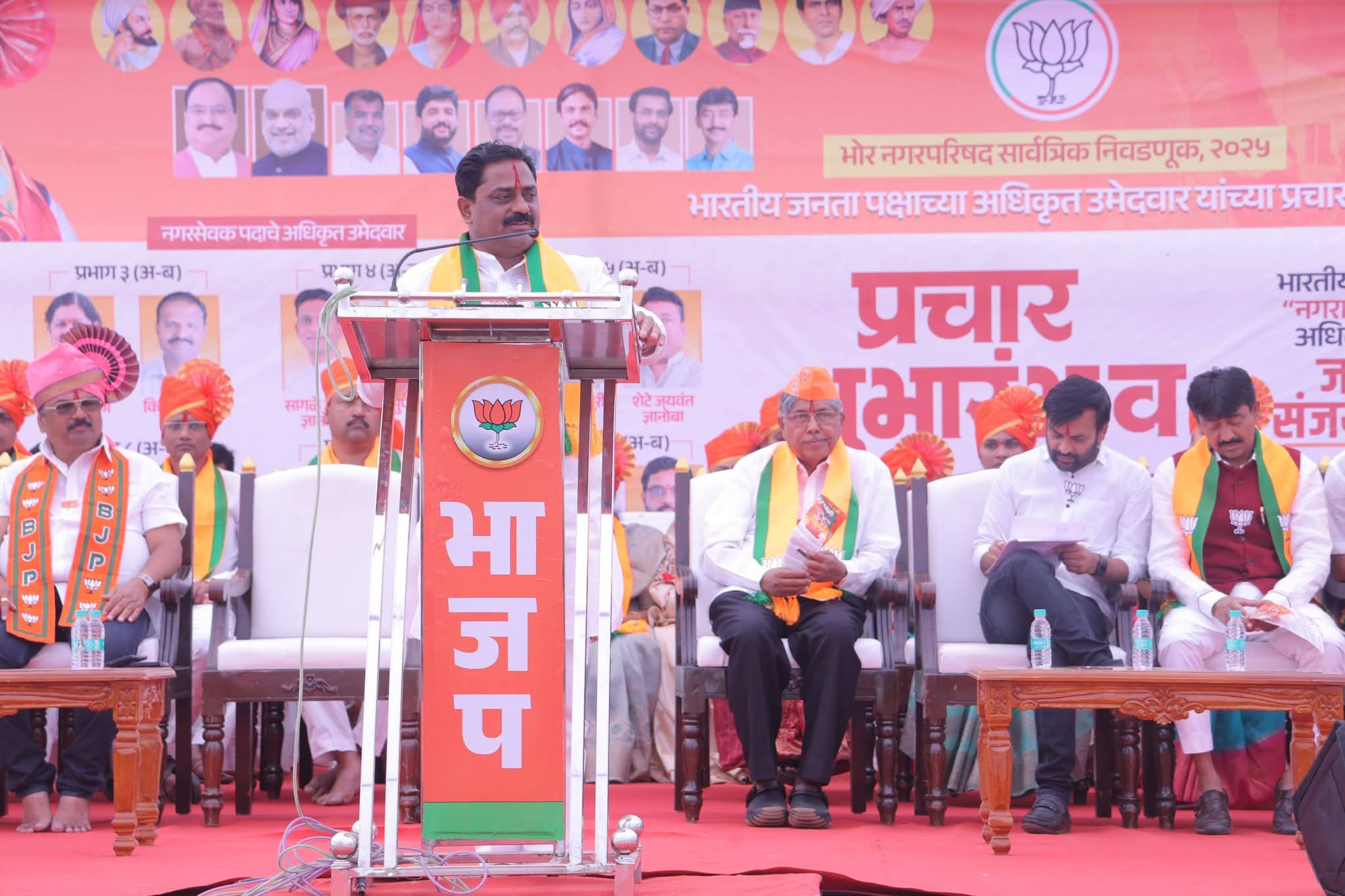 यावेळी बोलताना संग्राम थोपटे म्हणाले, “मागील तीन पंचवार्षिक काळात भोर नगरपालिकेत झालेल्या विकासकामांमुळे भाजपाची सत्ता एकहाती राहिली. आम्ही विकासाच्या मुद्द्यांवर निवडणूक लढत आहोत; भोरमध्ये रस्ते, पाणीपुरवठा, आरोग्य, क्रीडा व पायाभूत सुविधा या अनेक क्षेत्रांत प्रगती झाली आहे. अनेक प्रकल्प सध्या प्रगतीपथावर आहेत.”