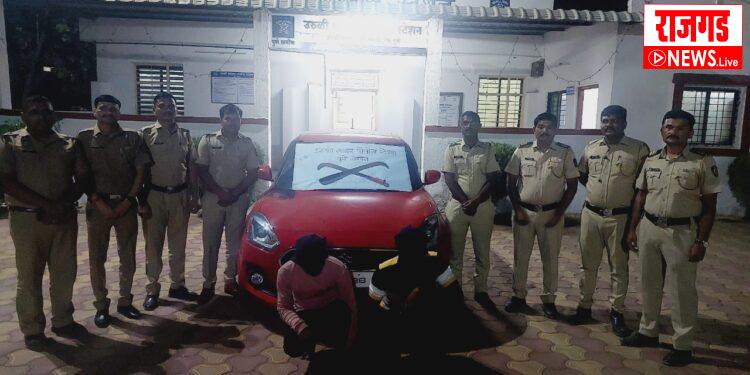 मिळालेल्या माहितीच्या अनुषंगाने सदर ठिकाणी जाऊन पाहणी केली असता एक लाल रंगाची चारचाकी गाडी दिसून आली.दरम्यान, गाडीची पाहणी केली असता गाडीत एक हजार रुपये किमतीचे दोन कोयते मिळून आले. या प्रकरणी  चंद्रशेखर दाजी चोरमुले (वय -२९, रा.  माळी मळा, लोणी काळभोर, ता. हवेली) व आकाश मधुकर लांडगे (वय -१९, रा. बस स्टॉपच्या पाठीमागे, उरुळी कांचन, ता. हवेली) असे अटक करण्यात आलेल्या दोघांची नावे आहेत. त्यांच्याकडून पोलिसांनी दोन कोयते व एक चारचाकी गाडी असा 5 लाख 2 हजार रुपयांचा मुद्देमाल जप्त केला आहे.