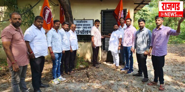 वेल्ह्यातील सार्वजनिक बांधकाम विभागाचे कार्यालय कायमच बंद असते या ठिकाणी देखील एकही अधिकारी कर्मचारी उपस्थित नसतो, त्यामुळे या कार्यालयास मनसेकडून टाळे ठोकण्यात आले यावेळी जिल्हाध्यक्ष संतोष दसवडकर तालुका अध्यक्ष दिगंबर चोरगे, अंकुश दसवडकर संदीप दिघे,ज्ञानेश्वर भुरुक दत्ता शेंडकर विकास भिकुले सुनील रेणुसे विनायक लिम्हन, अमोल गायकवाड, चंद्रकांत चव्हाण,धनंजय रेणुसे, राजू झांजे, अमित दसवडकर,उपसरपंच दत्ता कदम आधीसह मनसे कार्यकर्ते उपस्थित होते